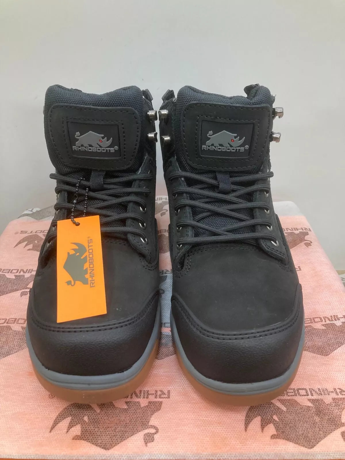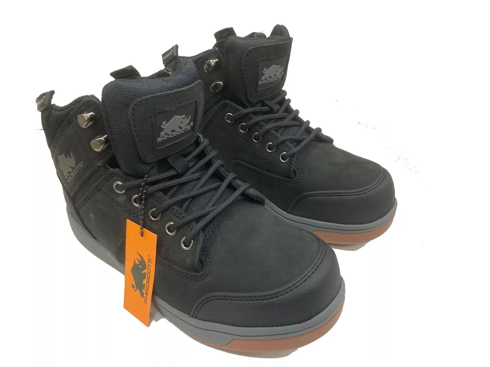 Rhino boots Outback Black Safety Work Boots FULL GRAIN Leather Like Switchback