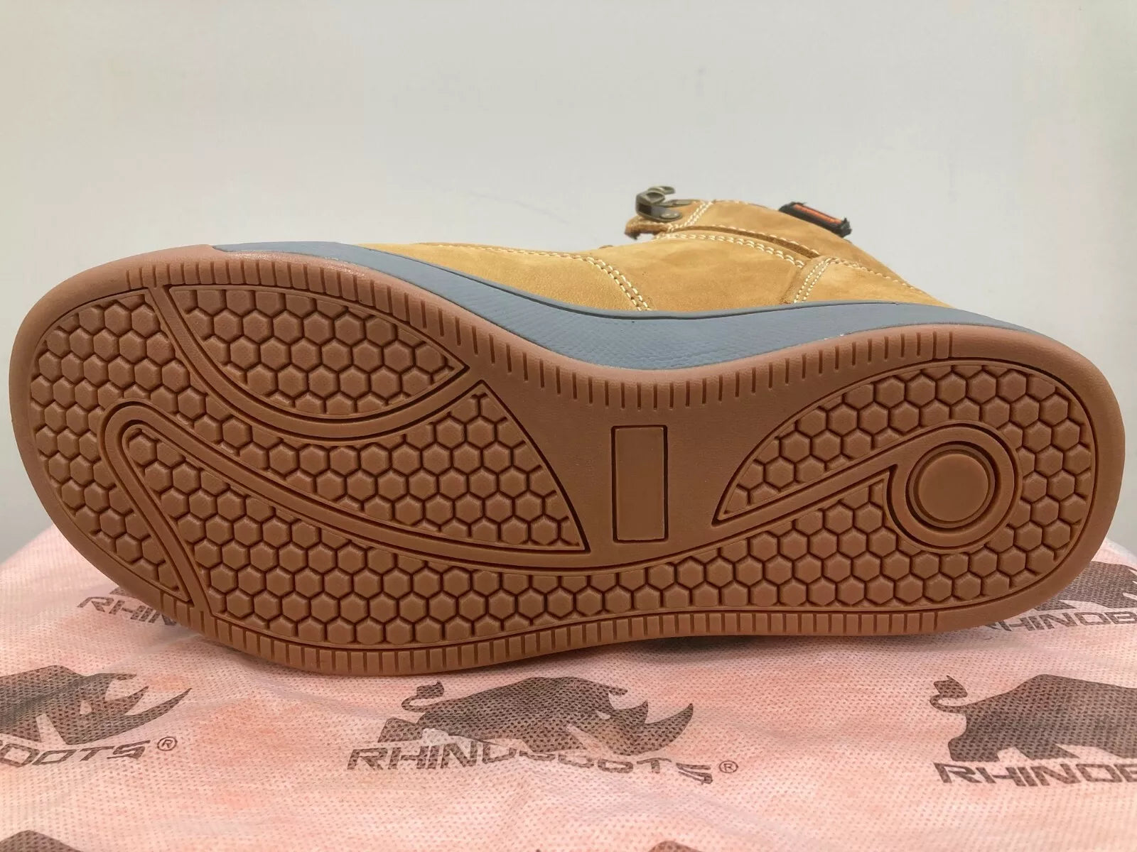 The stunning new Rhinoboots Outback Safety Hiker defines the "next generation" work boot style. The exclusive sole design with heel control plus front and side pull tabs give the Outback unrivalled performance and a unique look. Safety is assured with a steel toe and lightweight composite midsole. A cushioned sports inner sole encased inside soft nubuck leather uppers delivers a high level of comfort for long periods to save tired feet.
